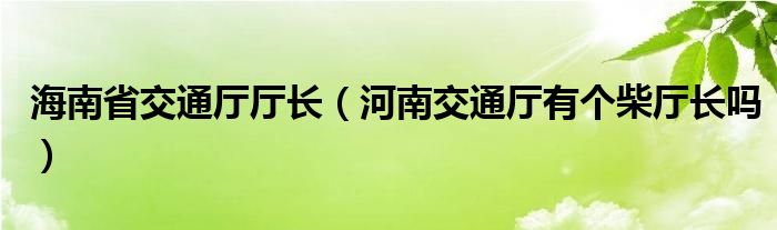 大家好,我是小根根,我来为大家解答以上问题。海南省交通厅厅长,河南交通厅有个柴厅长吗很多人还不知道,现在让我们一起来看看吧!