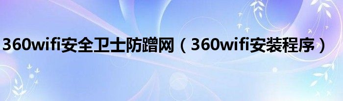 大家好,小式来为大家解答以上的问题。360wifi安全卫士防蹭网,360wifi安装程序这个很多人还不知道,现在让我们一起来看看吧!