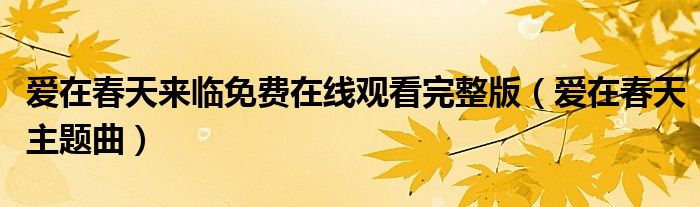 大家好,小式来为大家解答以上的问题。爱在春天来临免费在线观看完整版,爱在春天主题曲这个很多人还不知道,现在让我们一起来看看吧!