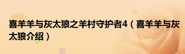 大家好,小式来为大家解答以上的问题。喜羊羊与灰太狼之羊村守护者4,喜羊羊与灰太狼介绍这个很多人还不知道,现在让我们一起来看看吧!