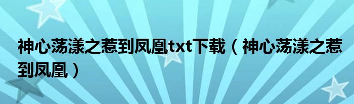 大家好,小式来为大家解答以上的问题。神心荡漾之惹到凤凰txt下载,神心荡漾之惹到凤凰这个很多人还不知道,现在让我们一起来看看吧!
