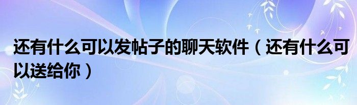 大家好,小式来为大家解答以上的问题。还有什么可以发帖子的聊天软件,还有什么可以送给你这个很多人还不知道,现在让我们一起来看看吧!