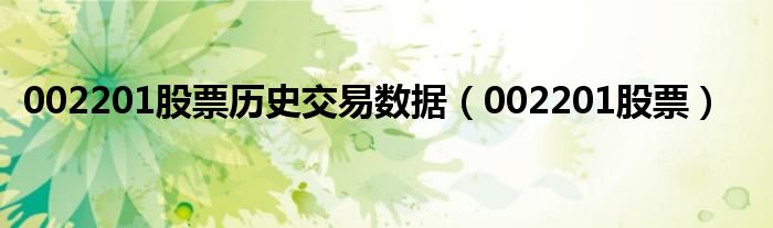 大家好,小式来为大家解答以上的问题。002201股票历史交易数据,002201股票这个很多人还不知道,现在让我们一起来看看吧!