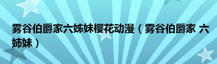 大家好,小式来为大家解答以上的问题。雾谷伯爵家六姊妹樱花动漫,雾谷伯爵家 六姉妹这个很多人还不知道,现在让我们一起来看看吧!