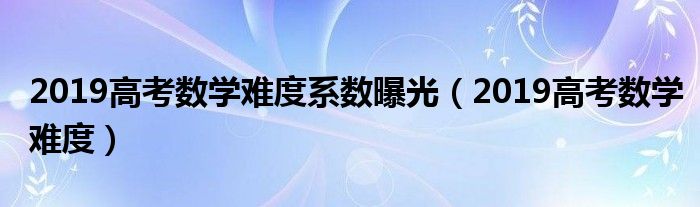 大家好,小式来为大家解答以上的问题。2019高考数学难度系数曝光,2019高考数学难度这个很多人还不知道,现在让我们一起来看看吧!