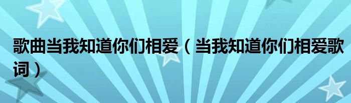 大家好,小式来为大家解答以上的问题。歌曲当我知道你们相爱,当我知道你们相爱歌词这个很多人还不知道,现在让我们一起来看看吧!
