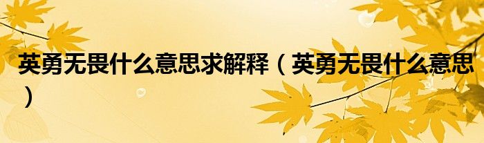 大家好,小式来为大家解答以上的问题。英勇无畏什么意思求解释,英勇无畏什么意思这个很多人还不知道,现在让我们一起来看看吧!
