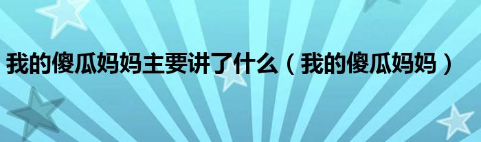 大家好,小式来为大家解答以上的问题。我的傻瓜妈妈主要讲了什么,我的傻瓜妈妈这个很多人还不知道,现在让我们一起来看看吧!
