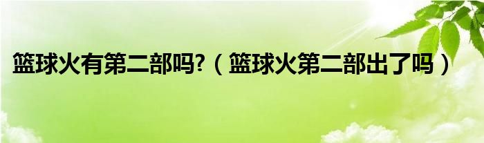 大家好,小式来为大家解答以上的问题。篮球火有第二部吗?,篮球火第二部出了吗这个很多人还不知道,现在让我们一起来看看吧!1、没有啦 我从去年就看完了 那个只是人的想想而已没有看到有第2部没有第二部了没有没。本文到此分享完毕,希望对大家有所帮助。