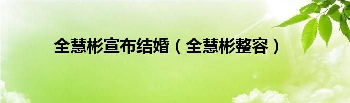 大家好,小式来为大家解答以上的问题。全慧彬宣布结婚,全慧彬整容这个很多人还不知道,现在让我们一起来看看吧!