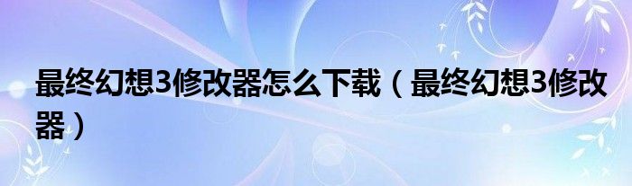 大家好,小式来为大家解答以上的问题。最终幻想3修改器怎么下载,最终幻想3修改器这个很多人还不知道,现在让我们一起来看看吧!