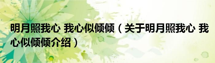 大家好,小夏来为大家解答以上的问题。明月照我心,我心似倾倾,关于明月照我心,我心似倾倾介绍这个很多人还不知道,现在让我们一起来看看吧!