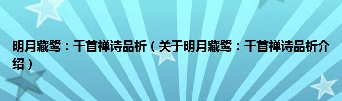 关于明月藏鹭:千首禅诗品析到此分享完毕,希望能帮助到您。