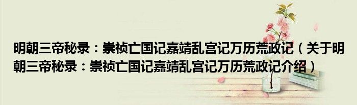 关于明朝三帝秘录:崇祯亡国记嘉靖乱宫记万历荒政记到此分享完毕,希望能帮助到您。