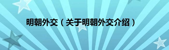 1、 明朝外交是指中国明朝时期的对外关系。在中外关系史和海外贸易史上,明代是一个非常典型的朝代,它有着不同于以往的朝贡体制和贸易体制,因而也衍生出了不同于以往朝代的对外贸易管理机构。