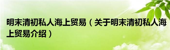 大家好,小夏来为大家解答以上的问题。明末清初私人海上贸易,关于明末清初私人海上贸易介绍这个很多人还不知道,现在让我们一起来看看吧!