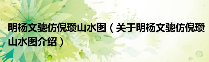 1、 《明杨文骢仿倪瓒山水图》是明代画家杨文骢创作的一幅中国画。