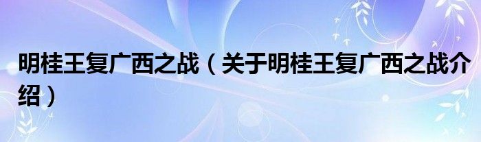 大家好,小夏来为大家解答以上的问题。明桂王复广西之战,关于明桂王复广西之战介绍这个很多人还不知道,现在让我们一起来看看吧!1、 明桂王复广西之战是顺治三年在广西发生的战争。关于明桂王复广西之战到此分享完毕,希望能帮助到您。