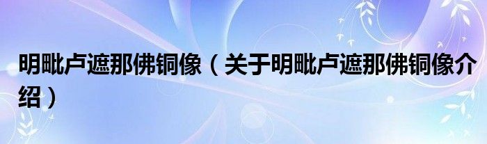 大家好,小夏来为大家解答以上的问题。明毗卢遮那佛铜像,关于明毗卢遮那佛铜像介绍这个很多人还不知道,现在让我们一起来看看吧!