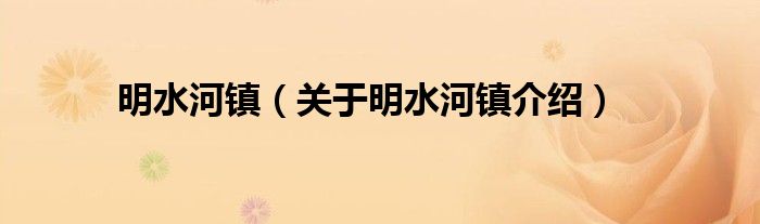 大家好,小夏来为大家解答以上的问题。明水河镇,关于明水河镇介绍这个很多人还不知道,现在让我们一起来看看吧!