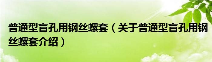 1、 StandardTitle in Chinese: 普通型盲孔用钢丝螺套