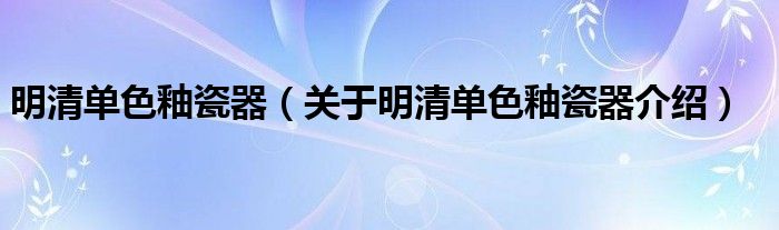 关于明清单色釉瓷器到此分享完毕,希望能帮助到您。