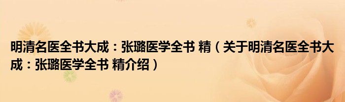 大家好,小夏来为大家解答以上的问题。明清名医全书大成:张璐医学全书 精,关于明清名医全书大成:张璐医学全书 精介绍这个很多人还不知道,现在让我们一起来看看吧!