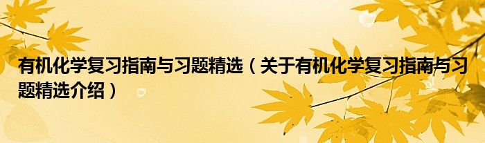关于有机化学复习指南与习题精选到此分享完毕,希望能帮助到您。