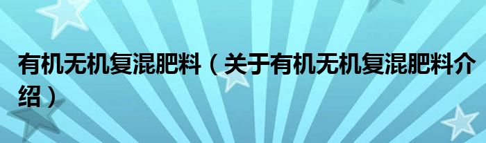1、 有机-无机复混肥是一种既含有机质又含适量化肥的复混肥。