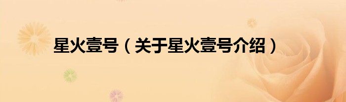 大家好,小夏来为大家解答以上的问题。星火壹号,关于星火壹号介绍这个很多人还不知道,现在让我们一起来看看吧!
