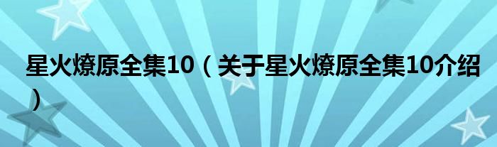 大家好,小夏来为大家解答以上的问题。星火燎原全集10,关于星火燎原全集10介绍这个很多人还不知道,现在让我们一起来看看吧!