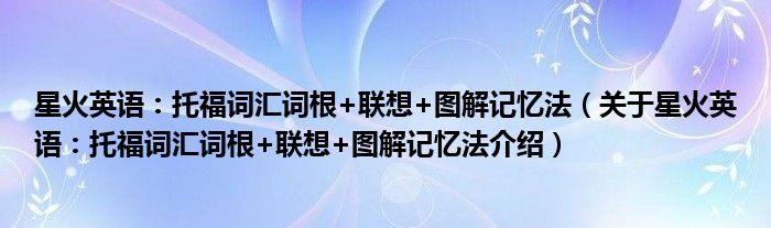 关于星火英语:托福词汇词根+联想+图解记忆法到此分享完毕,希望能帮助到您。