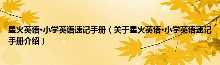 1、 《星火英语·小学英语速记手册》是2010年山东省地图出版社出版的图书。