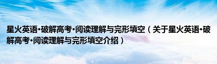 关于星火英语·破解高考·阅读理解与完形填空到此分享完毕,希望能帮助到您。