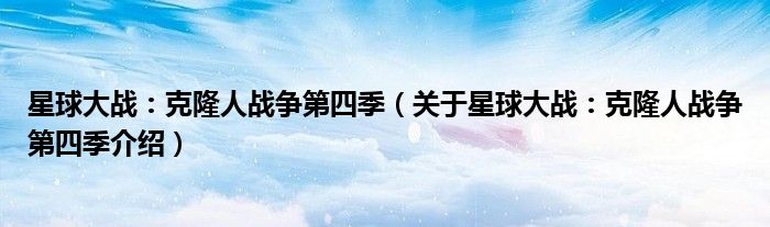大家好,小夏来为大家解答以上的问题。星球大战:克隆人战争第四季,关于星球大战:克隆人战争第四季介绍这个很多人还不知道,现在让我们一起来看看吧!