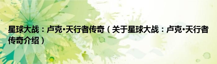 大家好,小夏来为大家解答以上的问题。星球大战:卢克·天行者传奇,关于星球大战:卢克·天行者传奇介绍这个很多人还不知道,现在让我们一起来看看吧!