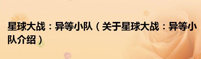 大家好,小夏来为大家解答以上的问题。星球大战:异等小队,关于星球大战:异等小队介绍这个很多人还不知道,现在让我们一起来看看吧!