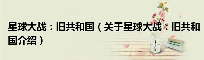 大家好,小夏来为大家解答以上的问题。星球大战:旧共和国,关于星球大战:旧共和国介绍这个很多人还不知道,现在让我们一起来看看吧!