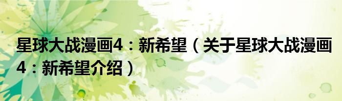 大家好,小夏来为大家解答以上的问题。星球大战漫画4:新希望,关于星球大战漫画4:新希望介绍这个很多人还不知道,现在让我们一起来看看吧!