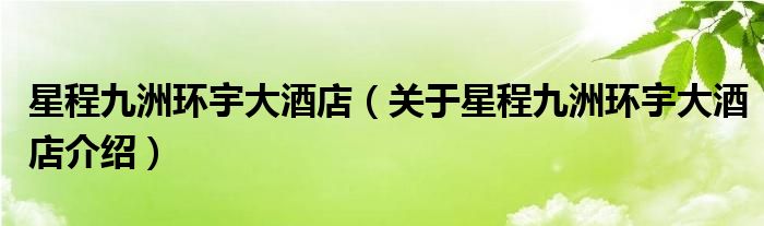 关于星程九洲环宇大酒店到此分享完毕,希望能帮助到您。