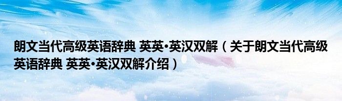 大家好,小夏来为大家解答以上的问题。朗文当代高级英语辞典 英英·英汉双解,关于朗文当代高级英语辞典 英英·英汉双解介绍这个很多人还不知道,现在让我们一起来看看吧!