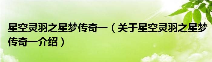 大家好,小夏来为大家解答以上的问题。星空灵羽之星梦传奇一,关于星空灵羽之星梦传奇一介绍这个很多人还不知道,现在让我们一起来看看吧!
