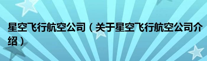 大家好,小夏来为大家解答以上的问题。星空飞行航空公司,关于星空飞行航空公司介绍这个很多人还不知道,现在让我们一起来看看吧!