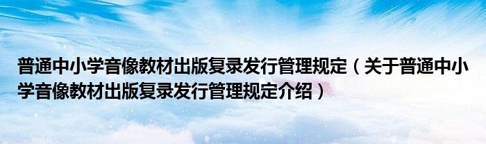 关于普通中小学音像教材出版复录发行管理规定到此分享完毕,希望能帮助到您。