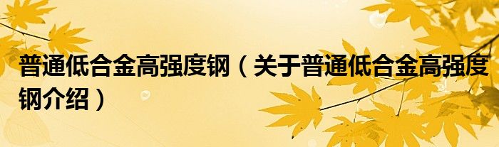 大家好,小夏来为大家解答以上的问题。普通低合金高强度钢,关于普通低合金高强度钢介绍这个很多人还不知道,现在让我们一起来看看吧!