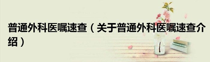 大家好,小夏来为大家解答以上的问题。普通外科医嘱速查,关于普通外科医嘱速查介绍这个很多人还不知道,现在让我们一起来看看吧!