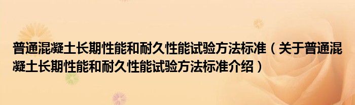 大家好,小夏来为大家解答以上的问题。普通混凝土长期性能和耐久性能试验方法标准,关于普通混凝土长期性能和耐久性能试验方法标准介绍这个很多人还不知道,现在让我们一起来看看吧!