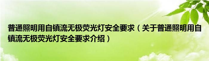 关于普通照明用自镇流无极荧光灯安全要求到此分享完毕,希望能帮助到您。