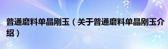 关于普通磨料单晶刚玉到此分享完毕,希望能帮助到您。