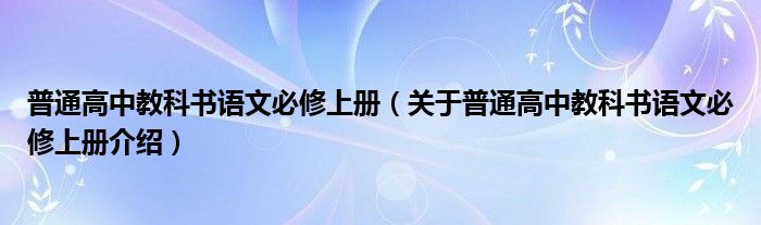 大家好,小夏来为大家解答以上的问题。普通高中教科书语文必修上册,关于普通高中教科书语文必修上册介绍这个很多人还不知道,现在让我们一起来看看吧!
